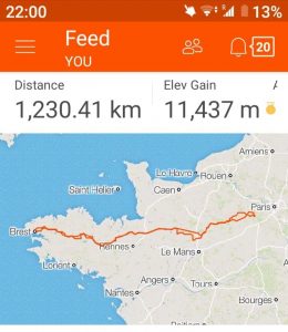 The stage to Loudeac included the first of my hotel stops, only 1km off the route but I got lost, riding an unnecessary 3km rather slowly. It took ten minutes to persuade the receptionist to let me take my bike into my room. I washed self and kit, set the alarm and slept, deeply. On waking, I completed my faffing before eating pasta in the empty restaurant. The whole stop, from leaving the route to rejoining it (time penalties if caught skipping a section), took 2 hours 40 minutes for one hour’s sleep. Not efficient.